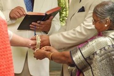 A handfasting is a betrothal rite whereby the hands of the couple are clasped and fastened together with a cord or cords just before, after, or during their vows are made to one another. The wrapping of the cord forms an infinity symbol. The handfasting knot that is tied is a symbolic representation of oneness between the couple. In a show of unity, they become bound to each other. Many couples include handfastings during their weddings.